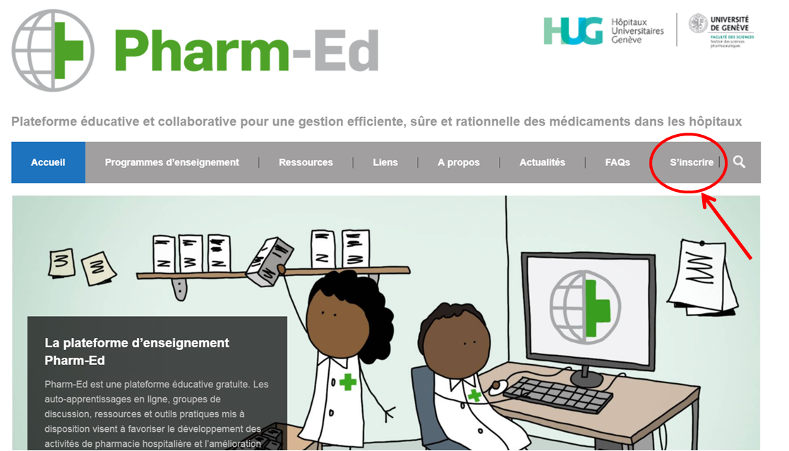 L'inscription au site Pharm-Ed vous donne la possibilité de suivre des cours en ligne gratuits, de participer au forum de discussion, ainsi que de télécharger des documents et des outils.