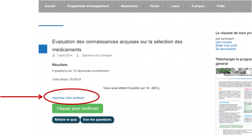 Oui. Les apprenants qui obtiennent plus de 80% de bonnes réponses au test d'évaluation des connaissances acquises peuvent imprimer une attestation de formation signée par le Professeur Bonnabry, Pharmacien-chef des Hôptitaux Universitaires de Genève. Toutefois, aucun crédit universitaire n'est attribué.